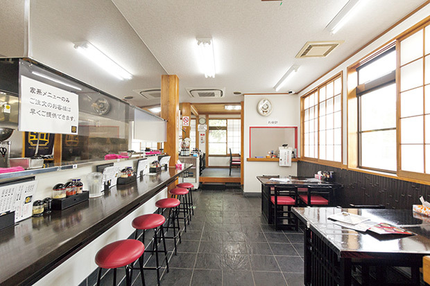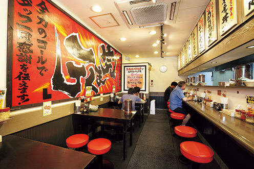 活気にあふれる家系ラーメン店。飲みやすいと好評のスープは、しっかり下処理したトンコツを約半日煮込んだもの。最後の一滴まで味わいたくなるほどの味だ。