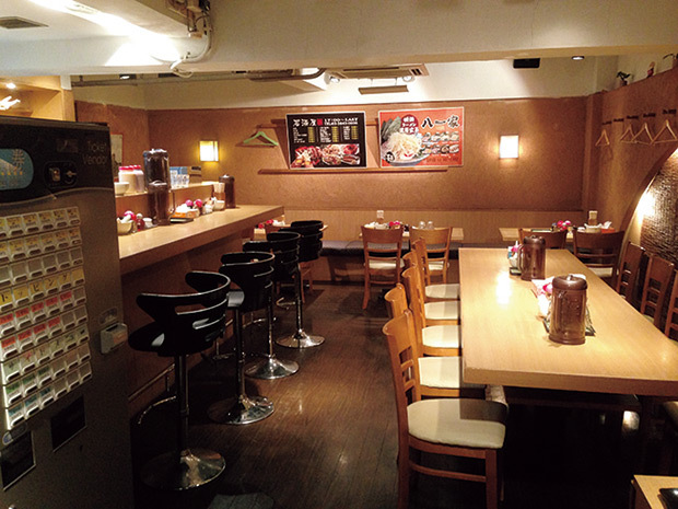「壱八家」出身の店主が手掛ける日本橋の家系ラーメン。トンコツスープには豆板醤、ニンニク、ゴマなどの卓上調味料がよく合い、オリジナルの一杯が楽しめる。