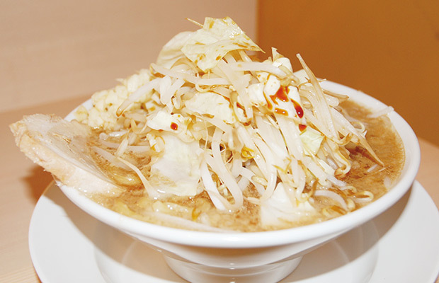 大盛りラーメンで有名な「野郎ラーメン」の新店舗。濃厚なトンコツスープが味わえ、焼き野菜やチャーシューなど、総重量1kg近くもあるラーメンのほとんどが自家製のものだ。