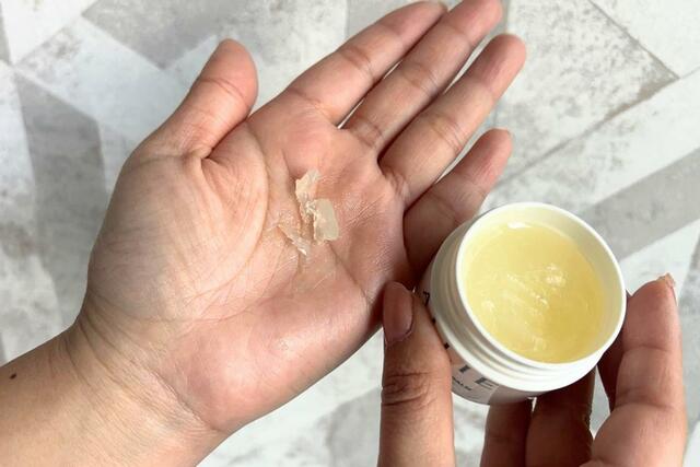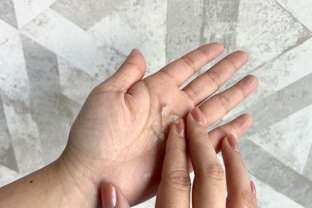 手の上で馴染ませると、徐々にオイル状のテクスチャーに変化していきます。