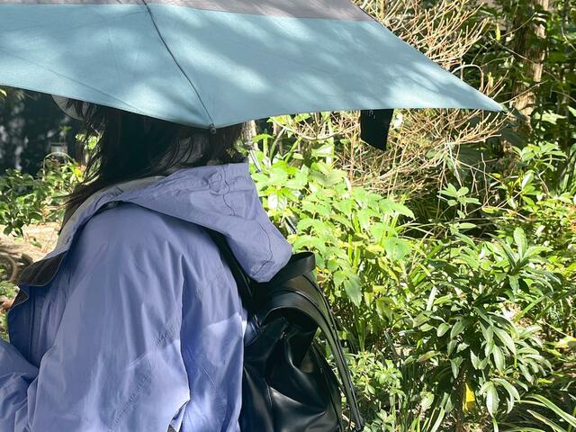 太陽の位置が低くなってくると、首の後ろが守れていなかったということもあるので、後ろが広いこちらの傘は日傘としても優秀ですね。