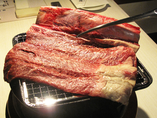 ではさっそく焼いていきましょう。今回はお店の方に焼いていただいたのですが……なんというか、このメニュー、すべてが焼肉の概念を超えてます。もはやステーキ並? いやステーキも超えてるダイナミックさ。