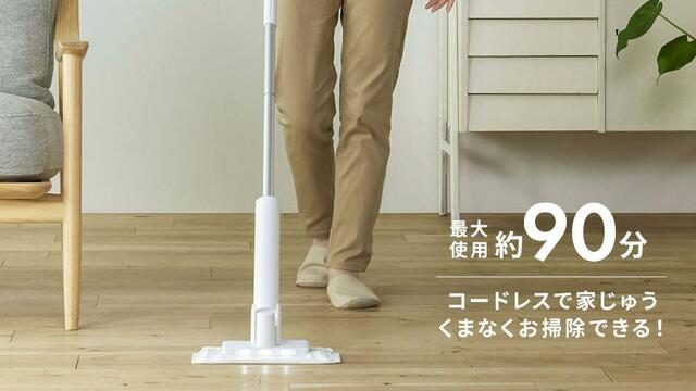 満充電で90分使えるから、しっかり家中掃除するときもサッと拭きたいときも◎。