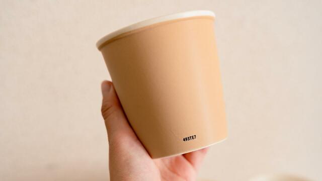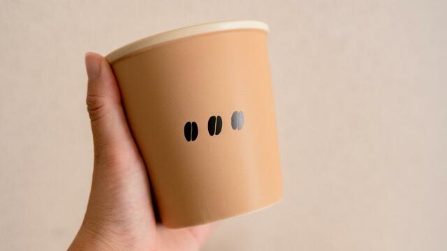 手に持ってみると、普通の紙コップよりは少し大きめで、容量は250㎖。マグカップ1杯分を入れることができます。