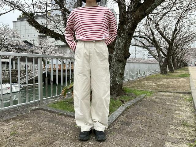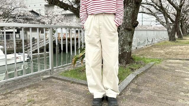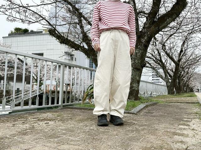 ここまで下半身にボリュームがくるパンツは持っていなかったのですが、穿いてみると意外と何にでも合いそう。