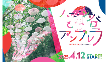 今年3月に開業6周年を迎えた「ムーミンバレーパーク」では、全長200メートル・約1000本の傘が織りなす「ムーミン谷とアンブレラ2025」を4月12日から開始した。期間は7月6日まで。4月26日から5月6日までのゴールデンウィーク(GW)期間中は、オリジナルソングに合わせて約5分間、花火を打ち上げる「ムーミン谷の湖上花火大会~春~」も開催する。