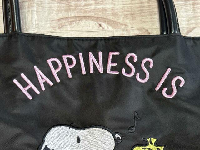 このトートバッグは、「PEANUTS(ピーナッツ)」コミック誕生75周年を記念した商品。そのため、刺繍のロゴも75周年を記念した内容になっています。