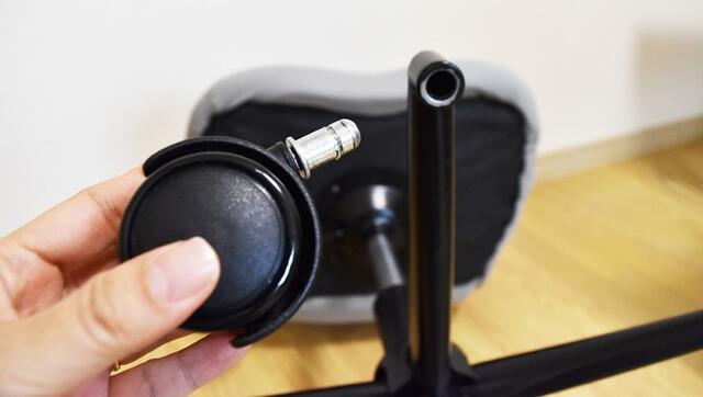 座面パーツを脚パーツにはめ込むだけ。キャスターも手で差し込めばOK。
