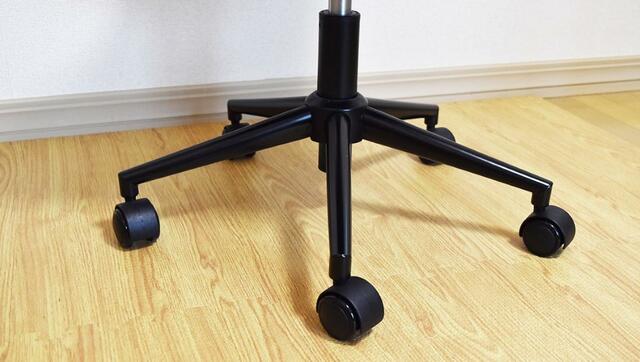 キャスターは5つで滑りもよく、チェアそのものもコンパクトで軽量なため移動しやすいので、部屋の掃除のときにも扱いやすいです。
