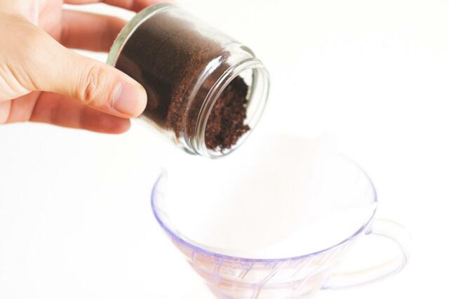 まずは、ドリッパーにペーパーフィルターをセットしてコーヒー粉を入れます。