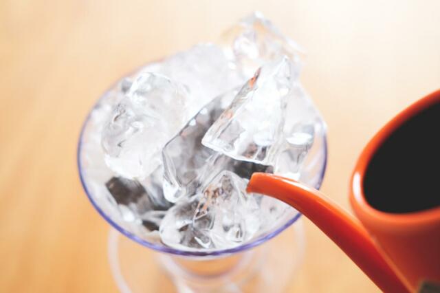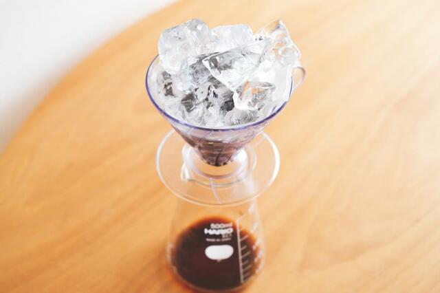 氷を乗せる前に水を注ぐことでハンドドリップの蒸らしと同じ効果が期待でき、抽出ムラによる味のブレが少なくなりますよ。
