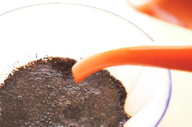 続いて、コーヒー粉全体に浸透するように水50mlを注ぎます。