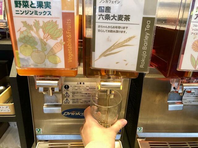 とりあえずノンカフェインの国産六条大麦茶をチョイスして、日替わりスープをよそってきました。