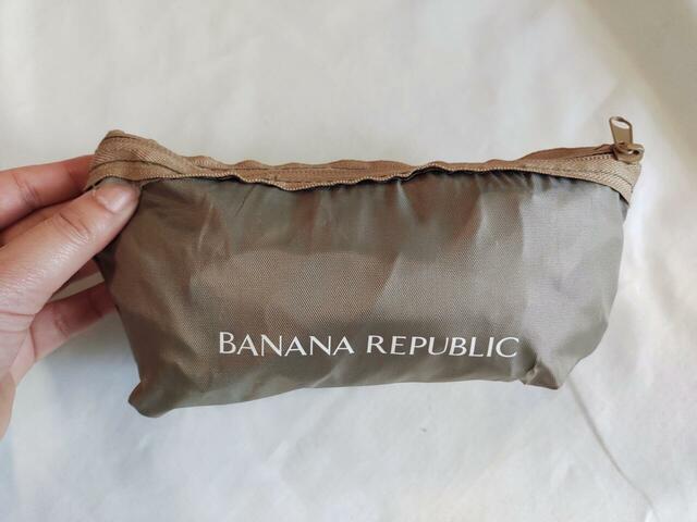 バッグは落ち着いたカーキカラーで、中央にはさりげなく「BANANA REPUBLIC」のロゴが入っており、大人っぽい雰囲気です。