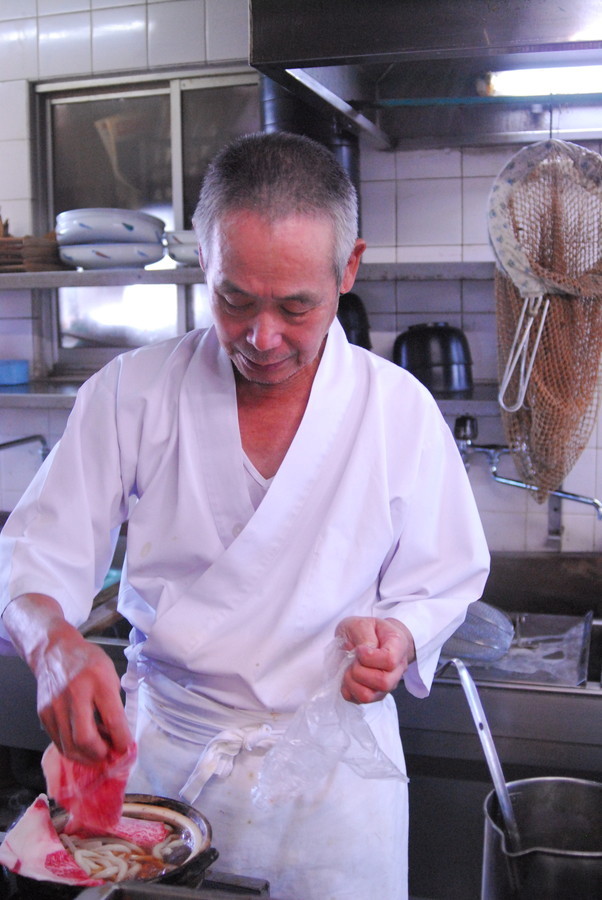 他のお店は、ぶっかけうどんが主流でしたが、こちらはオリーブ牛を使った「すき焼きうどん(1420円)」が多く出ているのだとか。早速作っていただきました。