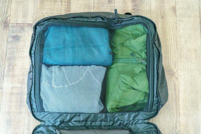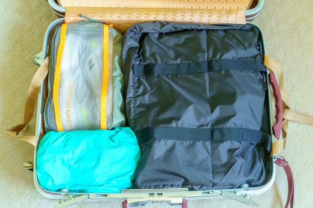 出発時はキャリーバッグの仕分け用ケースとして使い、帰りは荷物が増えた分を入れてキャリーオンバッグとして活用できるんです。