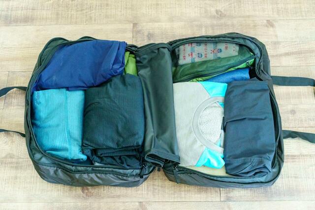 先日の10日間旅行で使用しましたが、上下の衣類数着に洗面用具、ダウンベストなどを入れてもまだ余裕があり持て余し気味。