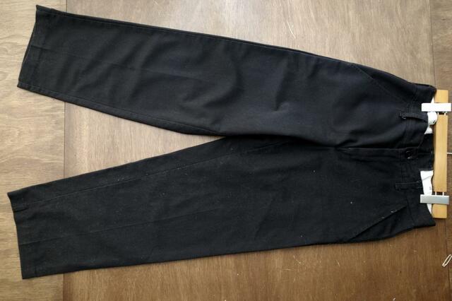ちょうど、ホコリが付着しやすくて困っていた黒のパンツがあったので、片足にだけ「Pure Pop」を使ってみましょう。