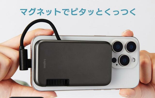 ロジテックのSSDはマグネット付きなので、MagSafe対応のiPhoneなら背面に張り付けることが可能。