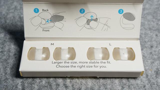 ちなみに、装着感を微調整するための大きさ別イヤーカフキャップも同梱されています。もしも耳から抜け落ちそうな場合は、試してみてください。