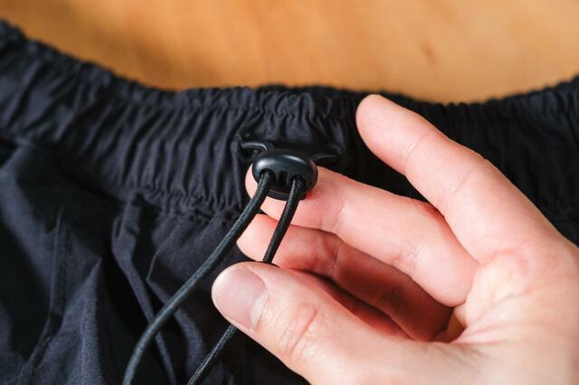 ウエストと裾はゴム仕様になっていて、ちょうどいい場所でサッと留められます。