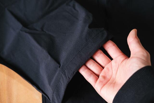生地にはナイロン88%、ポリウレタン12%を使用していて、シャカシャカとした肌触り。