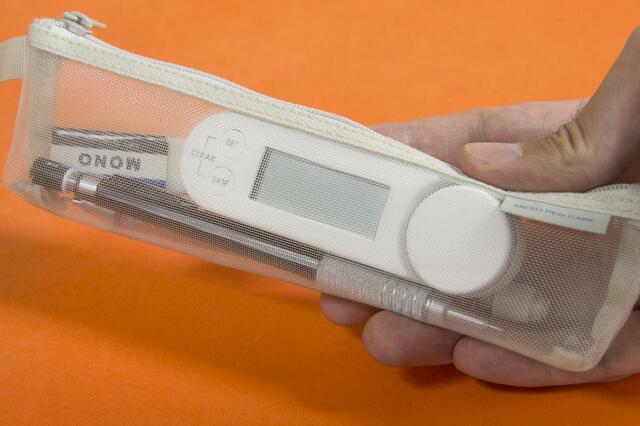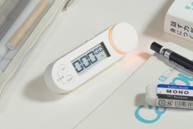 スティック型なのでペンケースに収まりやすく、音を出さずに光でお知らせしてくれるモードもあるので、使う場所を選ばないタニタの「学習タイマー TD-433」。