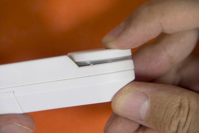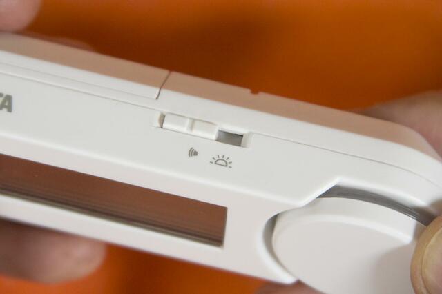 本体上部にはOFF、音でお知らせモード、光でお知らせモードの切り替えスイッチ。