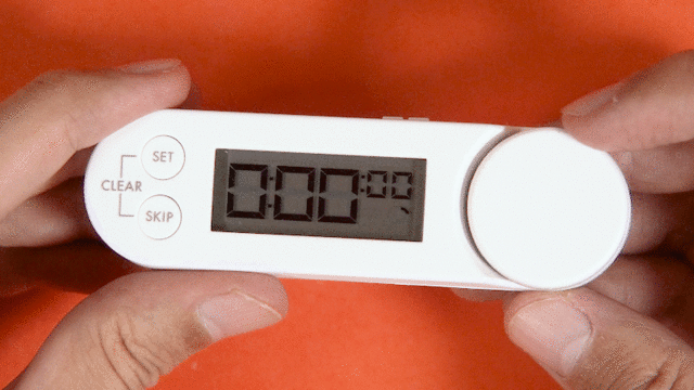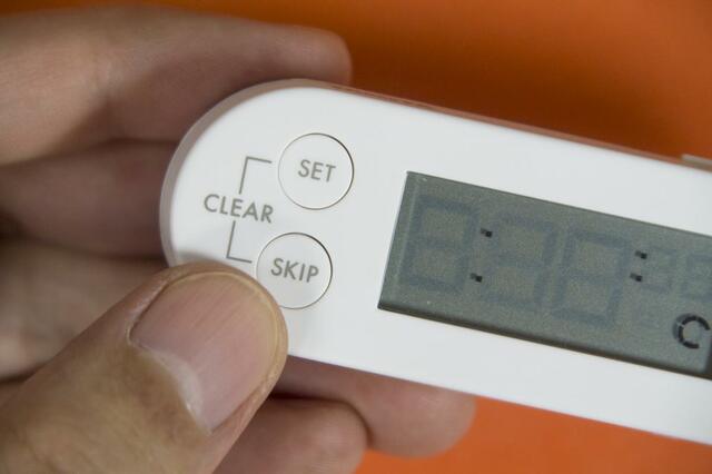 前面にはSETボタンとSKIPボタンがあり、2つのボタンを同時に3秒以上長押しすることで、設定した時間をリセットすることができます。
