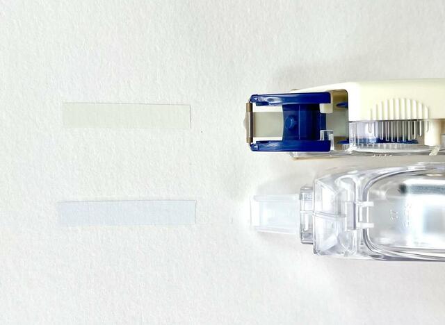 一般的な修正テープと比べてみると、色味の違いが見てとれます。