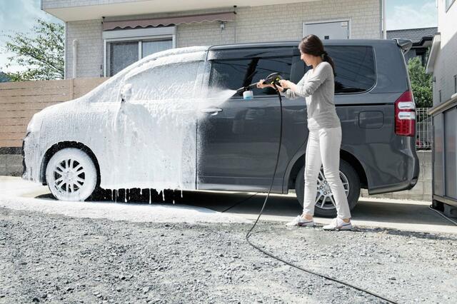 この記事でご紹介している、ケルヒャー「高圧洗浄機 K 2 サイレント【これだけで始められる洗車セット】」なら、ホースと洗剤、専用ノズルがセットになっているので、早速洗車ができますよ。