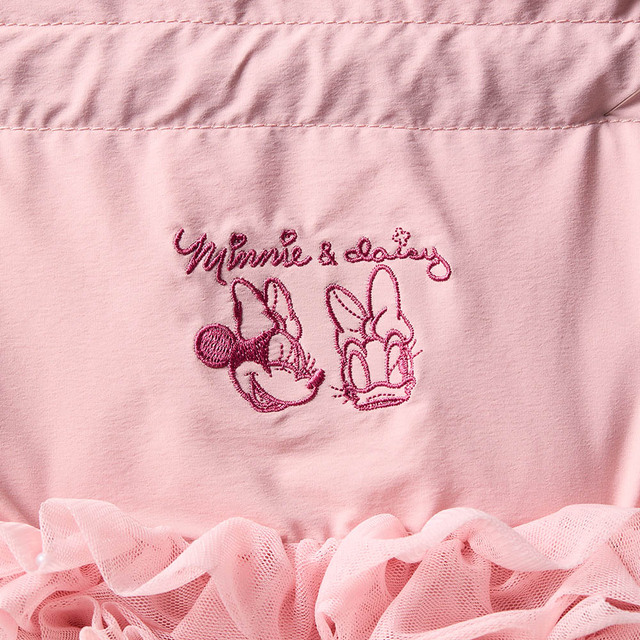 バレリーナをイメージしてデザインされたフリル、パープルとピンクの優しいパステルカラー、刺繍で描かれたミニー&デイジーなど、可愛さ満載のアイテムです。