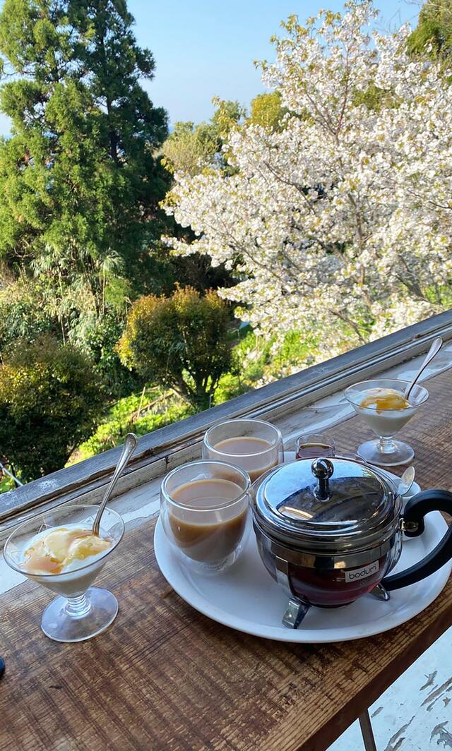 桜といつもの朝食。