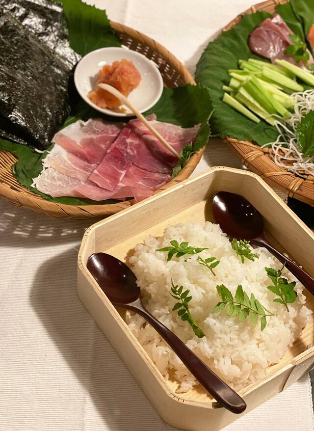 SUZUKIYAで「ブリとサーモンとイカとマグロと真鯛」の刺身が2切れずつ入ったパックを見つけ、手巻き寿司を作ろう!と思った(友人宅で手巻き寿司が流行っていると聞いたことが誘因)。