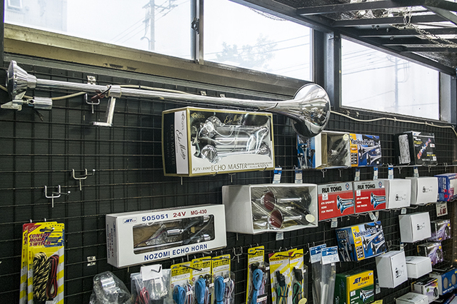 改めて『トラック野郎』を観たせいもあり、ド派手な外装商品を想像していたので、ちょっと期待外れだったが、店内に並ぶ商品は普通の車しか持たない筆者にも十分に楽しめるものだった。