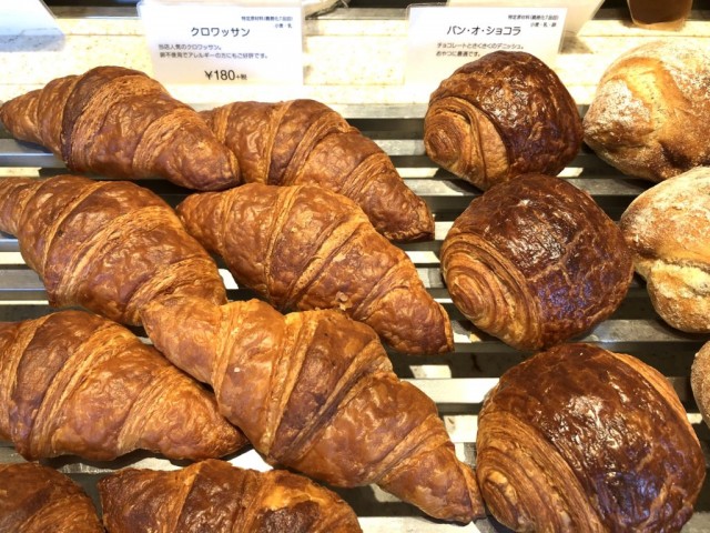人気のクロワッサンは入ってすぐのところに。強めの焼き色ですね。