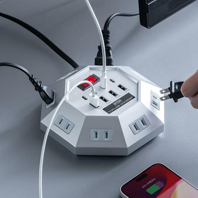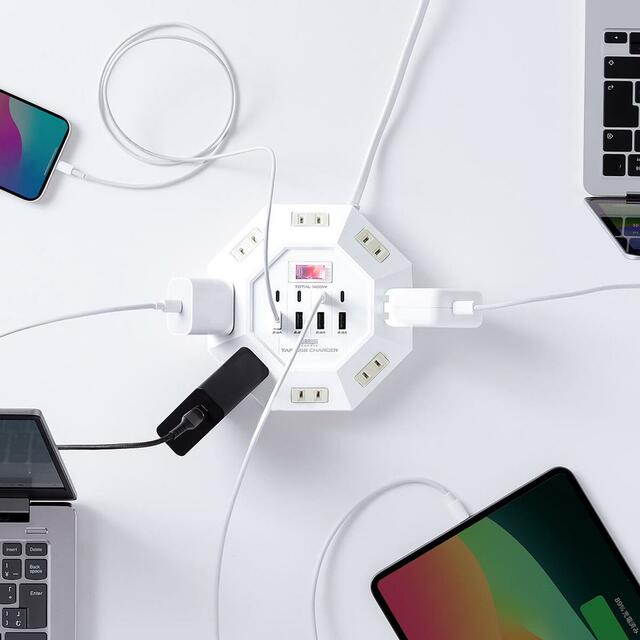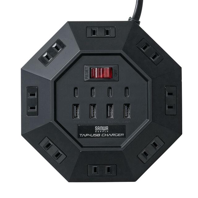 サンワサプライの700-TAP072シリーズは、ちょっと珍しい八角形の電源タップ。