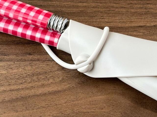 シリコーンゴムの柔軟性により、カトラリーにフィットしてきちんと固定してくれるのが頼もしいところ。
