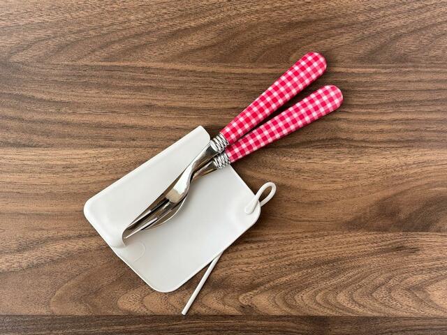 使い方は簡単。カトラリーをポケット部分に入れて、くるっと巻きつけるだけ!