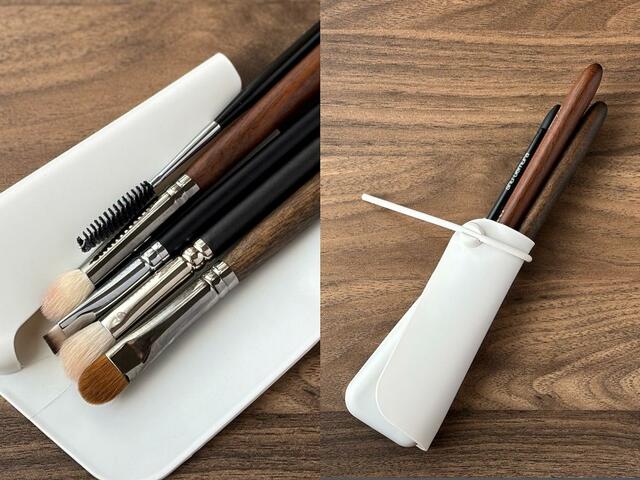 太さ・長さが異なるメイクブラシやスクリューブラシをひとまとめにできるので、旅行先でも衛生的に持ち運べます。ポーチのなかでメイクブラシがバラバラになってた! なんてことが解消されました。