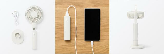 4月9日(水)に発売された「角度が変えられる充電式ハンディファン」は、持ち手部分が2,450mAhのモバイルバッテリーになっている優れもの。