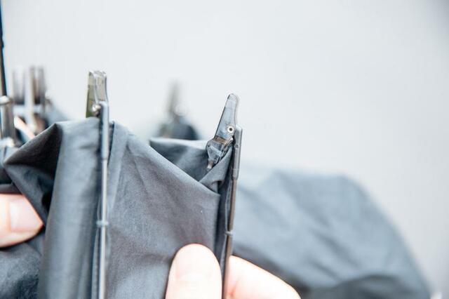 内側の骨のベースには、軽くて丈夫なカーボンファイバー素材を採用。外側部分の骨には、しなやかで柔軟性のあるグラスファイバーが使われているんです。