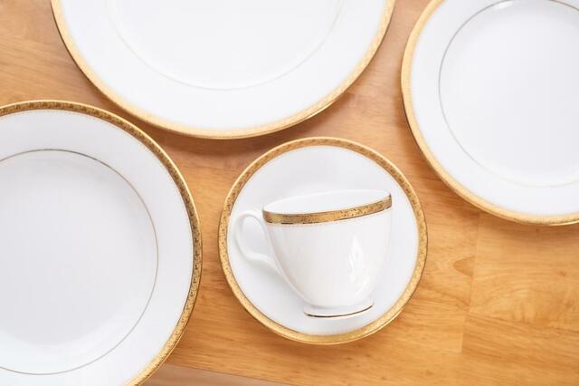 ノリタケのシャーロッタゴールド20PCセットは、とっても繊細な金色の装飾が入っている華やかな食器のセット。