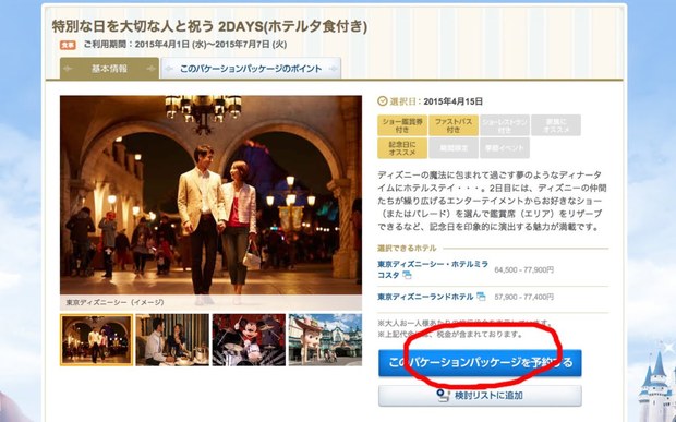 東京ディズニーリゾートではファストパスやショーの鑑賞席などの特典がついた「バケーションパッケージ」という旅行プランが販売されています。