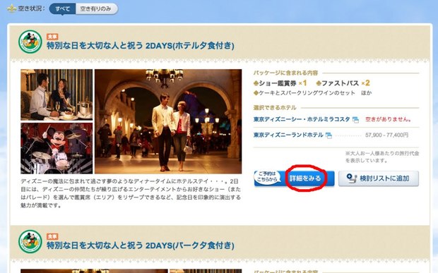 3. バケーションプランが見つかったら「このバケーションパッケージを予約する」を押します。