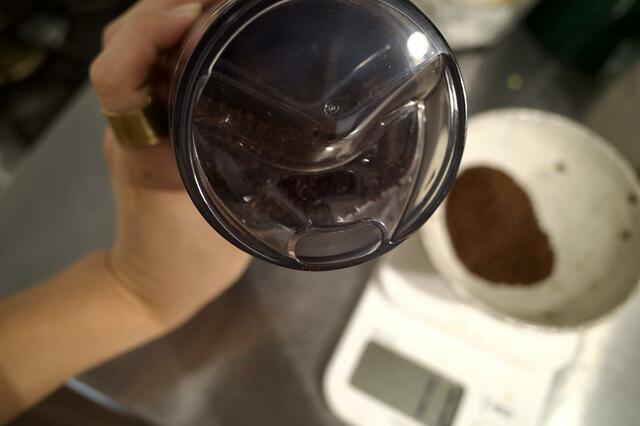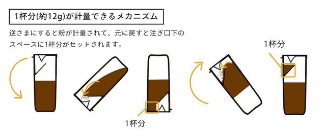 1回の量は約12g。スプーンもはかりも必要なければ、フタをとってひっくり返すだけなので、コーヒー粉のセットにかかる手間をかなり減らせました。