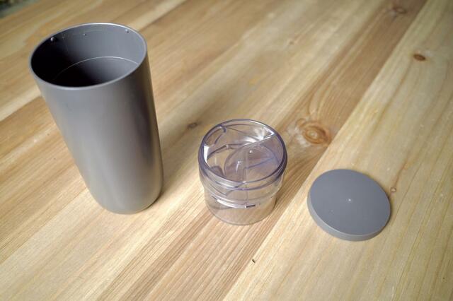 分解すると、フタ、内フタ、本体容器の3つに分かれます。