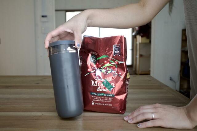 ちなみに、今回用意したコーヒー粉はスーパーで購入した1袋360gのものなので、複数回に分けて詰め替えが必要でした。