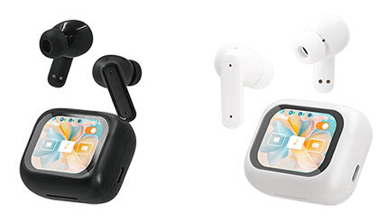 「完全ワイヤレスイヤホン TOUCH」は、ゲオ初となる充電ケースにタッチスクリーンを搭載した完全ワイヤレスのイヤホン。タッチスクリーンでは、音楽や動画の再生はもちろん、イヤホンを探す、タイマー/ストップウオッチ、接続済みデバイスのカメラシャッターといった、多彩な操作ができる。