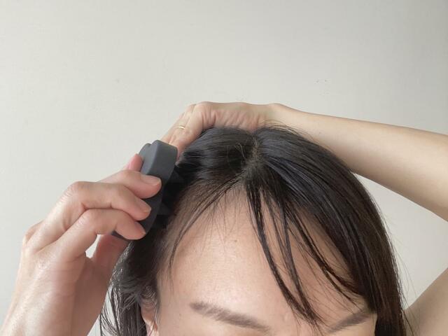 その後シャンプー時にも、泡立てた後にscalp brushを頭皮に当てながらジグザグと動かします。